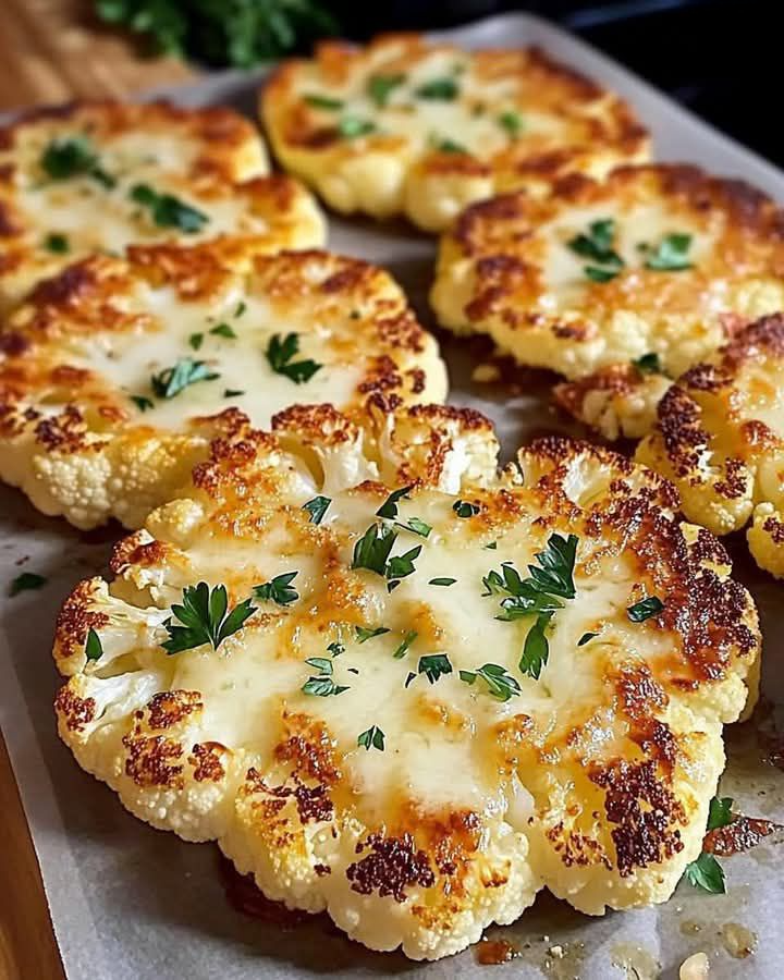 Bloemkool is een veelzijdige groente die je kunt omtoveren tot een elegant en smaakvol gerecht. Deze bloemkoolsteaks worden geroosterd tot ze perfect zijn, met een knapperige Parmezaanse korst en gesmolten mozzarella. De kruiden geven een warme en diepe smaak aan de natuurlijke smaak van de bloemkool. 🧀🌿 Perfect voor een vegetarische maaltijd of als bijgerecht! … Lire plus